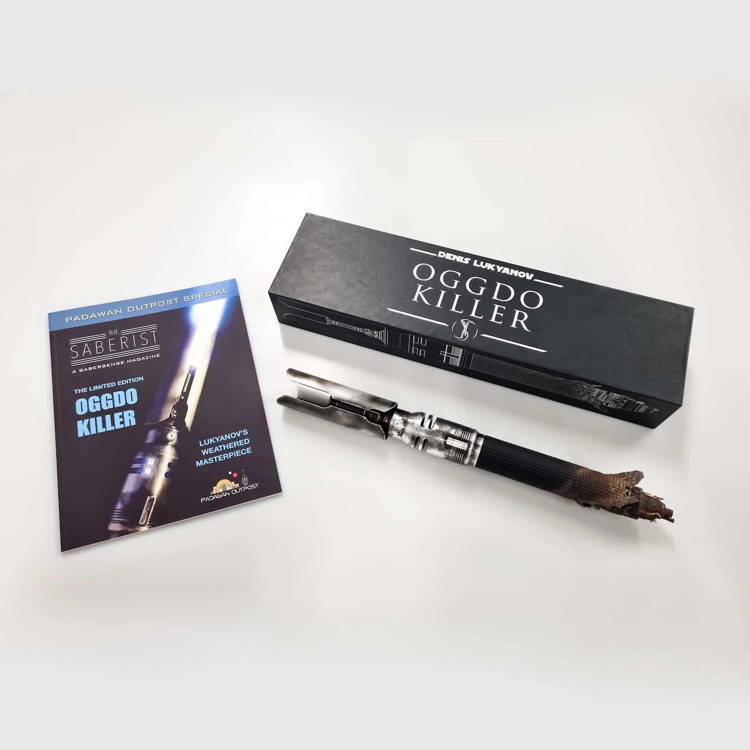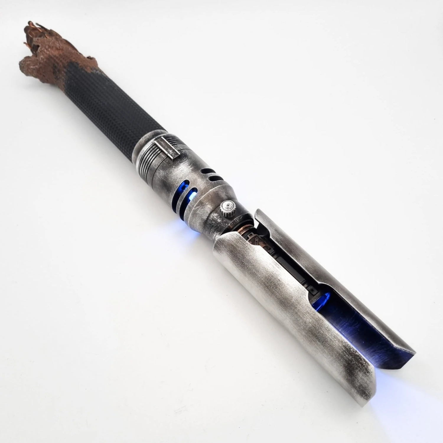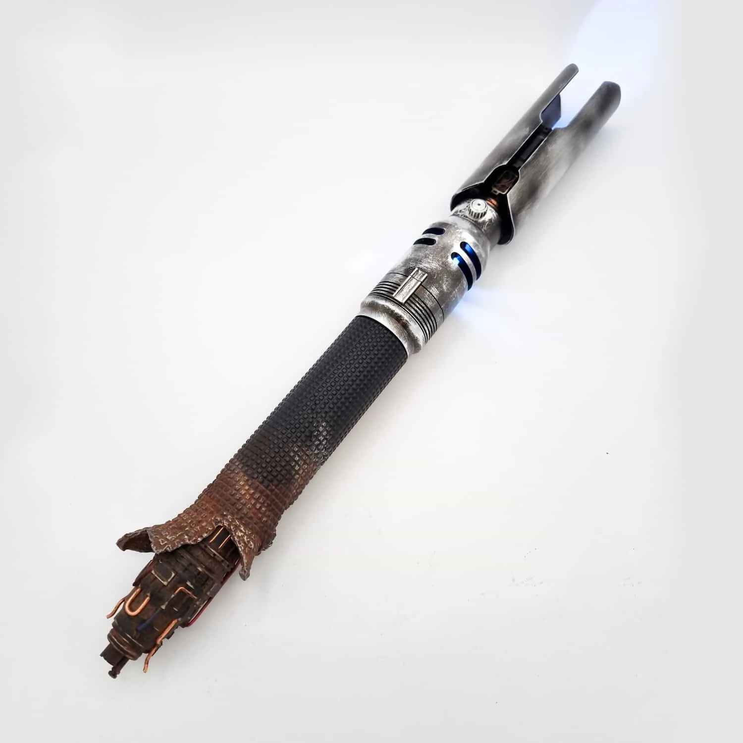A true master piece by saber maker Dennis Lukyanov. The “Oggdo Killer” hilts were limited to only 300 hilts, and quickly became one of the most sought-after hilts in the lightsaber community. Based on the hilt wielded by Cal Kestis from the game “fallen Order”. In addition to this already incredible hilt, Josh from Multiverse props has weathered these to perfection, and the combination of these two masters of their trade, means we may have a Cal Kestis hilt, that may never be bettered.