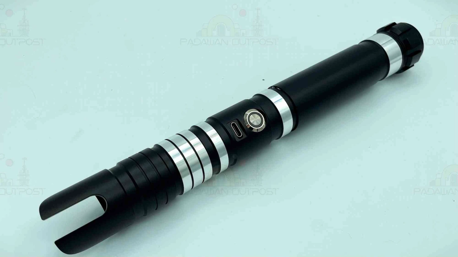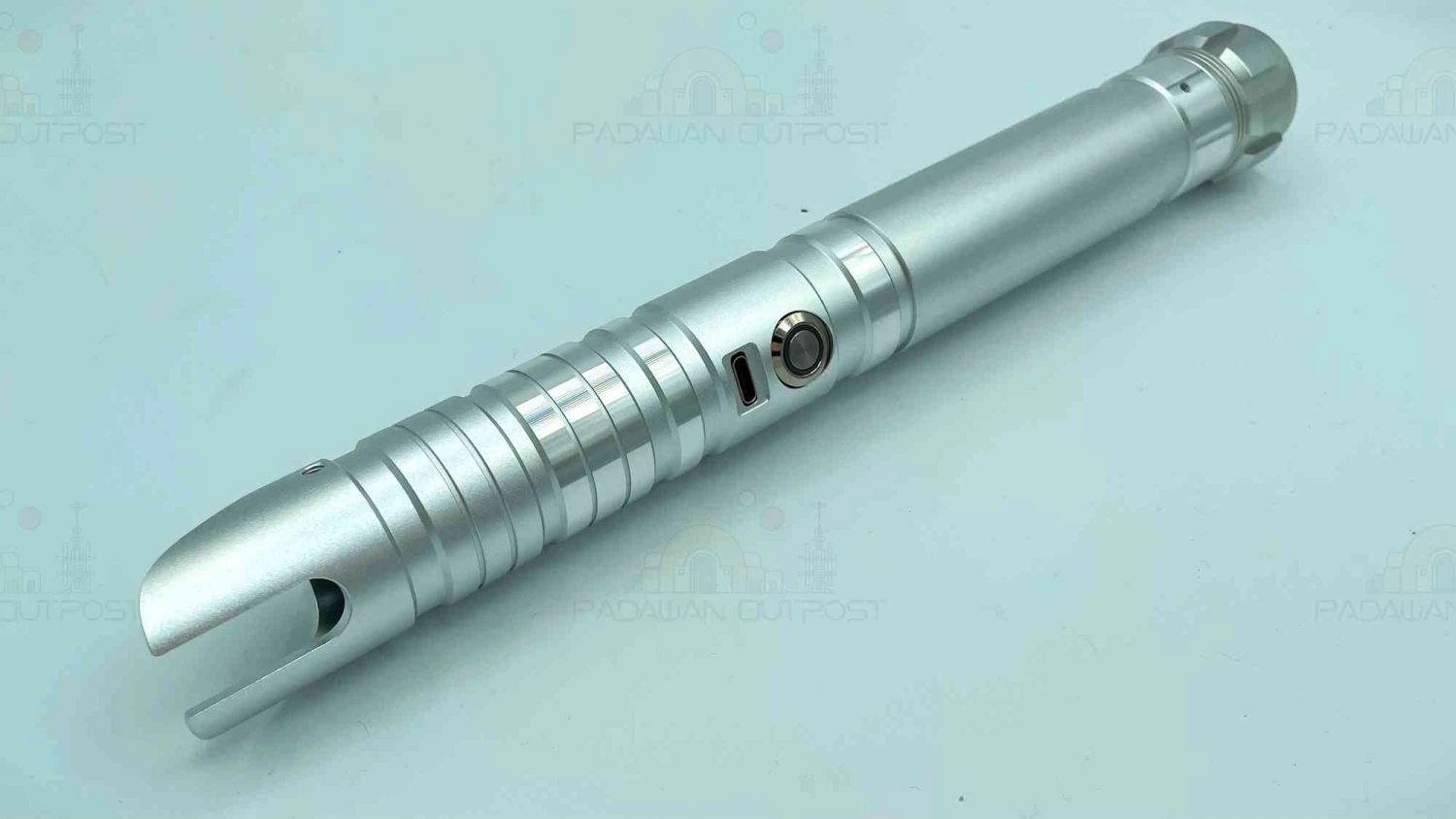 - The hilt has a removable grip and pommel, Switch and emitter are one piece but also removable.