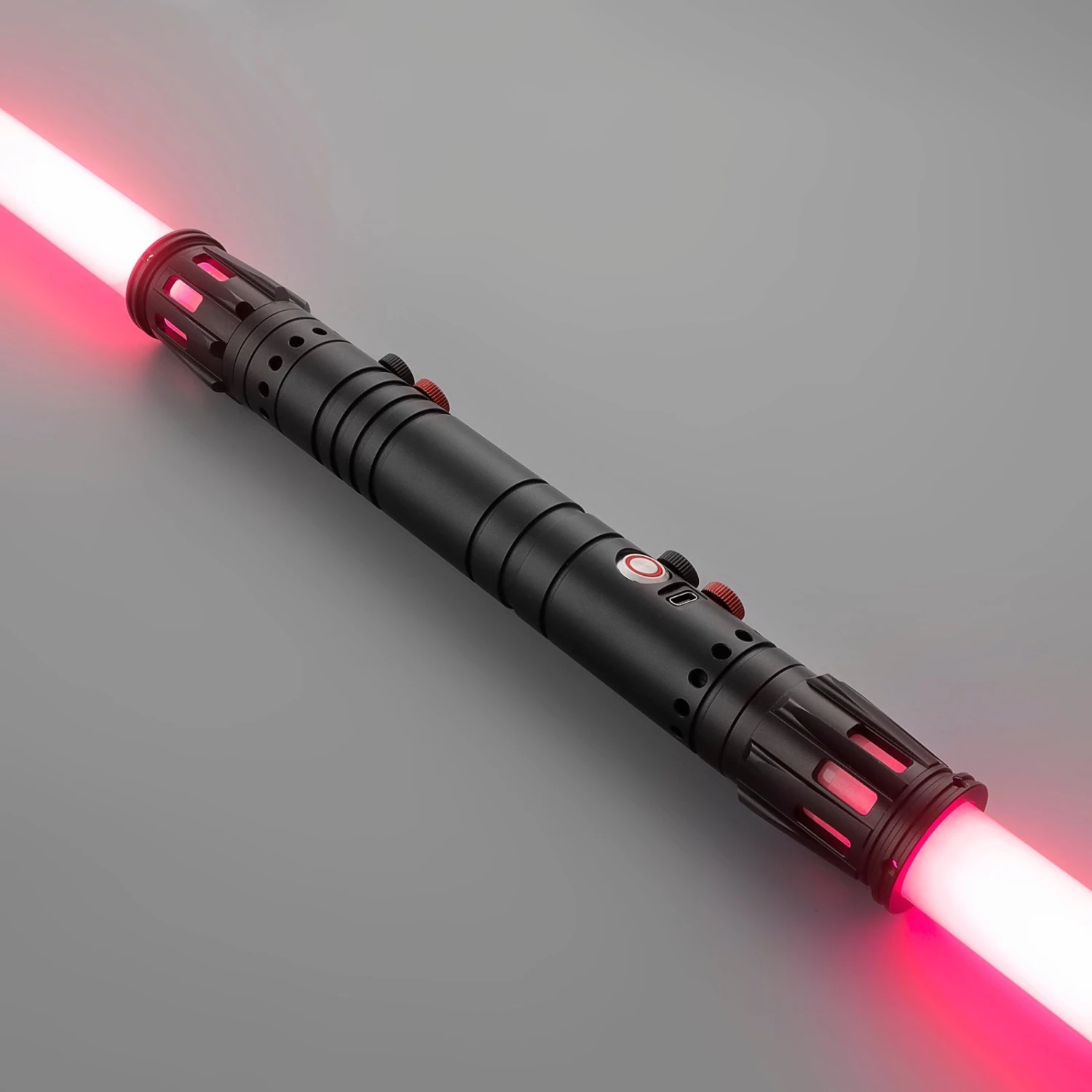 Based on the infamous saber wielded by Darth maul, the mini maul is a single, double ended saber. It can be used as a single bladed saber by simply removing one blade.