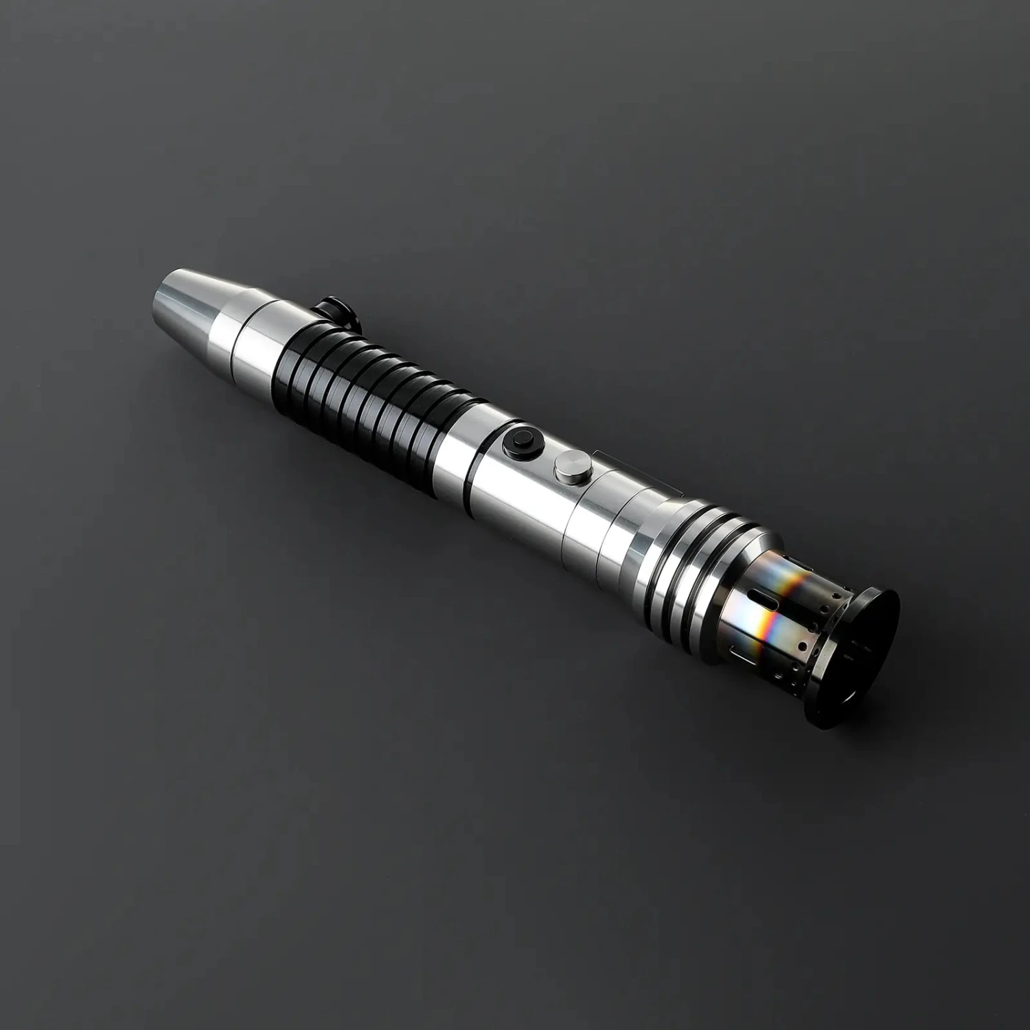 Introducing the Combat Saber – Model Nari, inspired by the Jedi Nari from the “Kenobi” TV series. Made with high-quality aluminum, this saber is both sturdy and stylish with a heat-stained emitter and lit control board. Feel the force with this beautiful replica hilt.