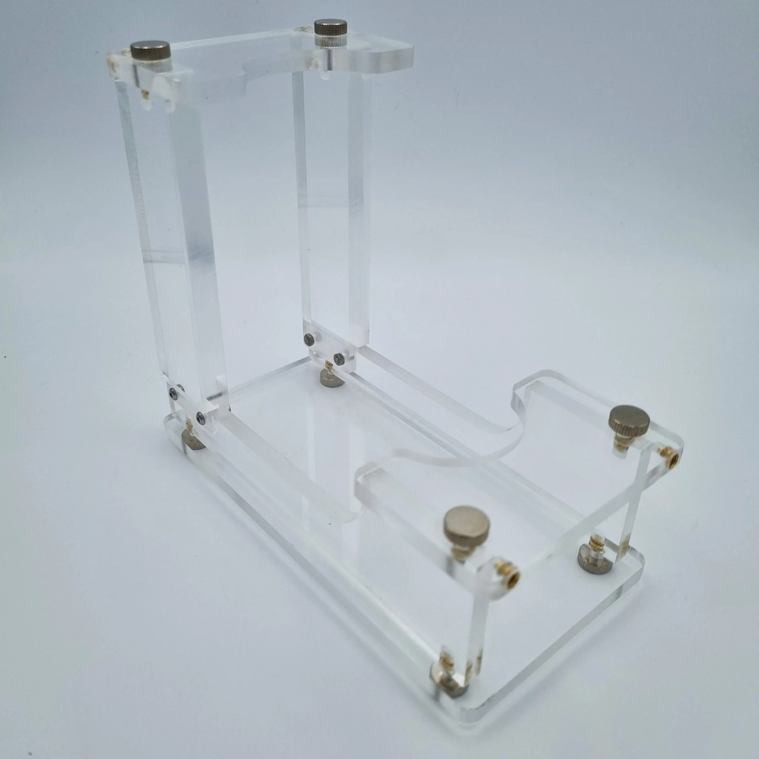 Clear perspex stand that can be built in two different ways to display your saber vertically and horizontally.