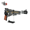 This is a 1:1 replica of the Mandoโs Blaster and measures 31cm in length and is 17cm tall on the stand.