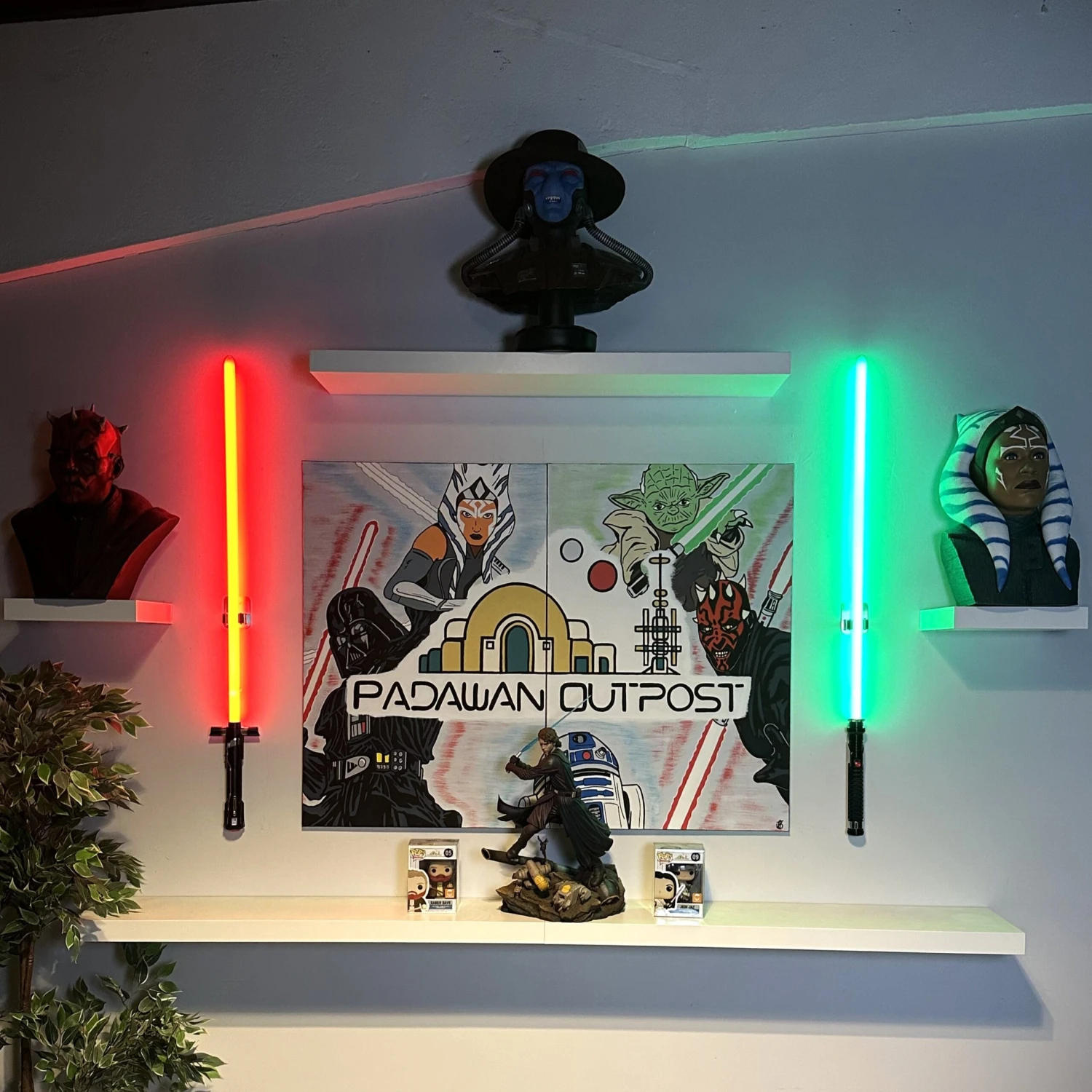 Turn your lightsabers into mesmerizing wall art! Pair the Saber Display Light with ourย optional wall mountsย to create dazzling displays in your home, office, or collectorโs showcase.